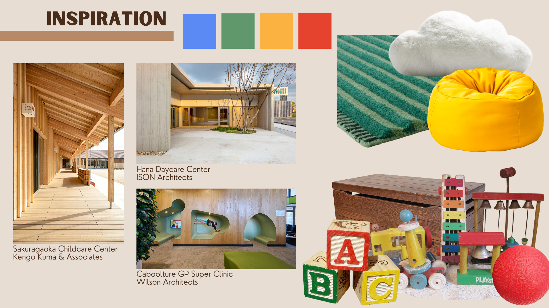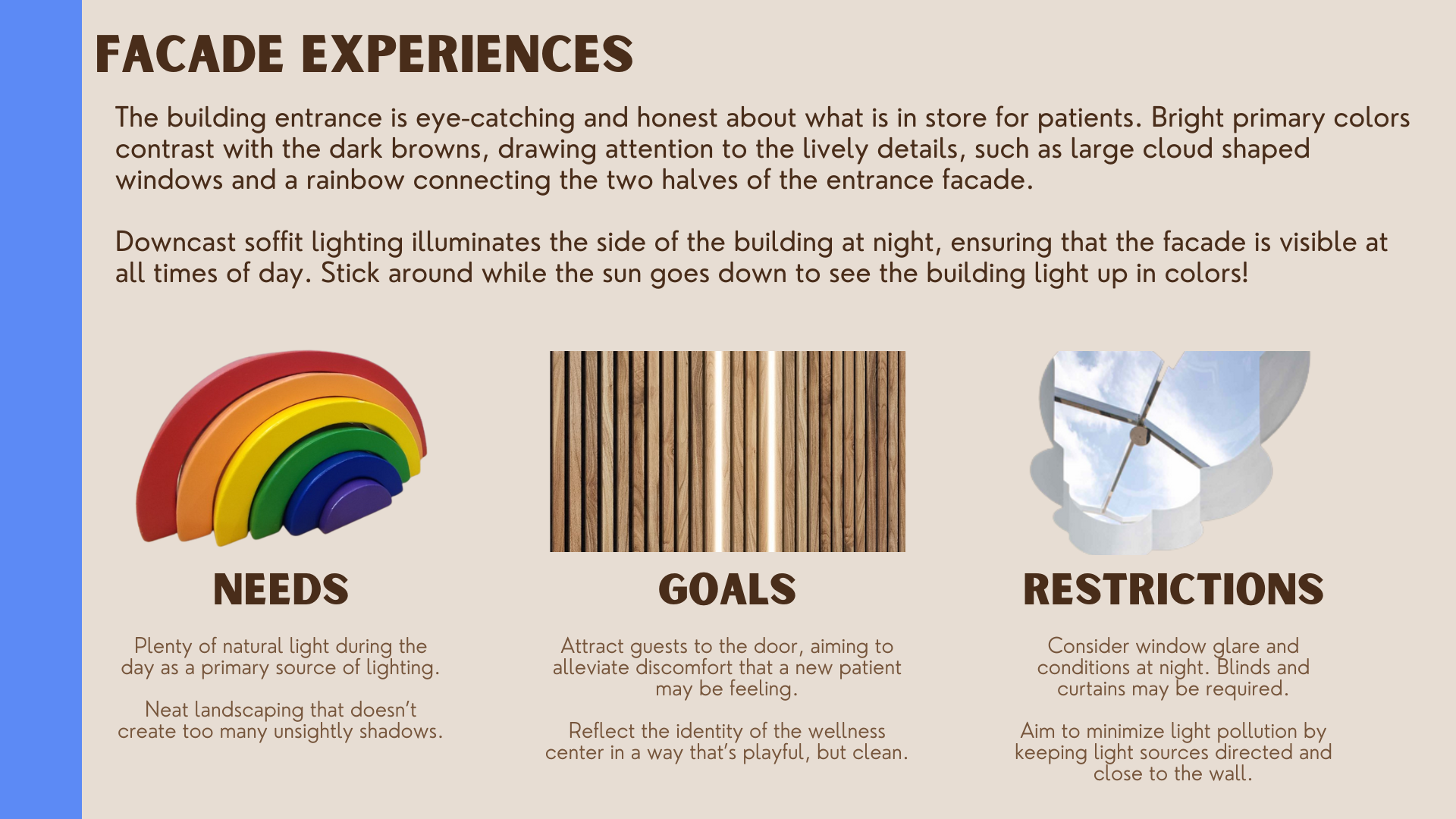 Back Into Shape Children’s Wellness Center welcomes patients and their loved ones to a space where architecture is cleverly lit, and primary colors are utilized to evoke the feeling of painted wooden toys, as well as amplify readability and understanding.