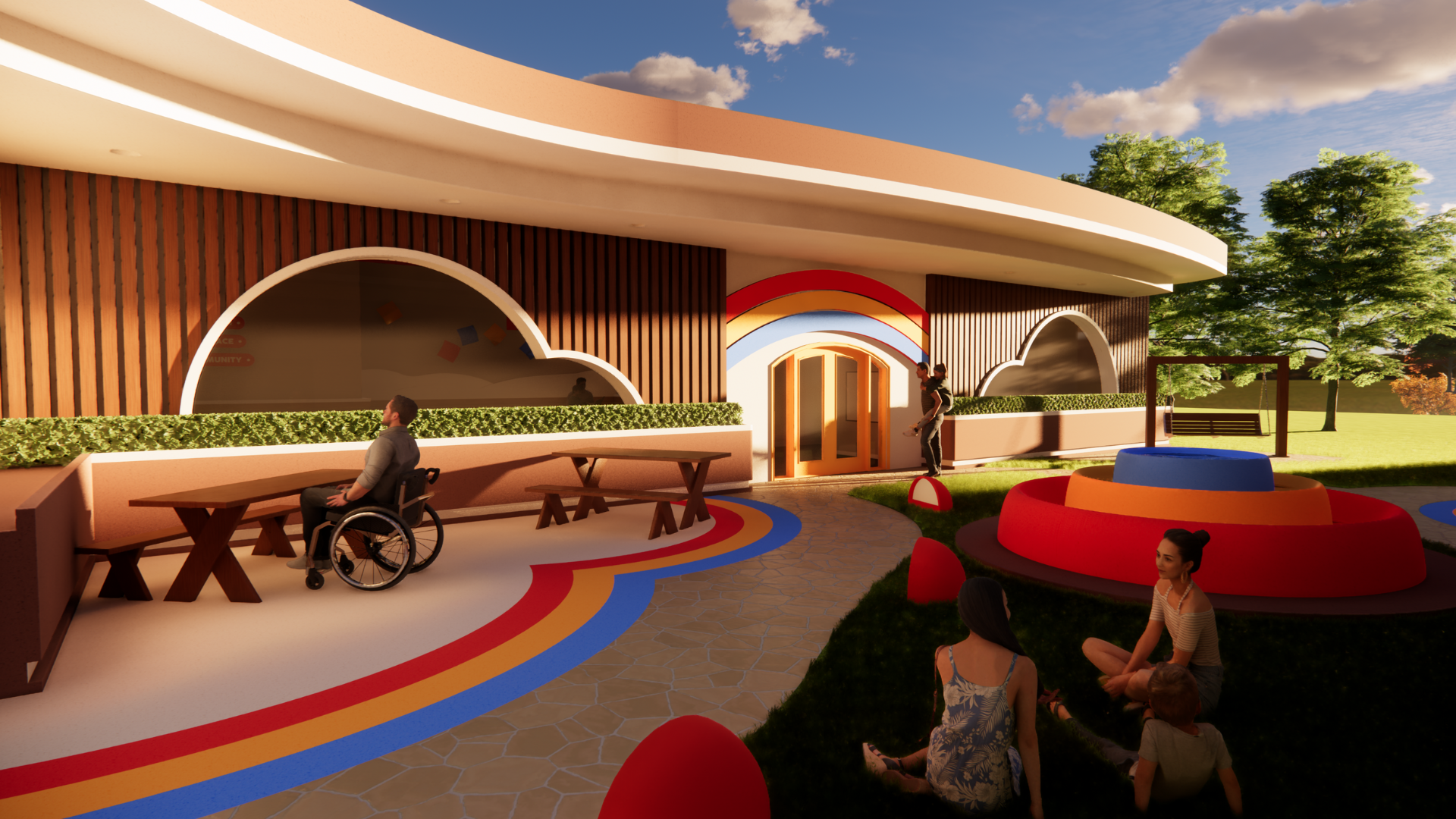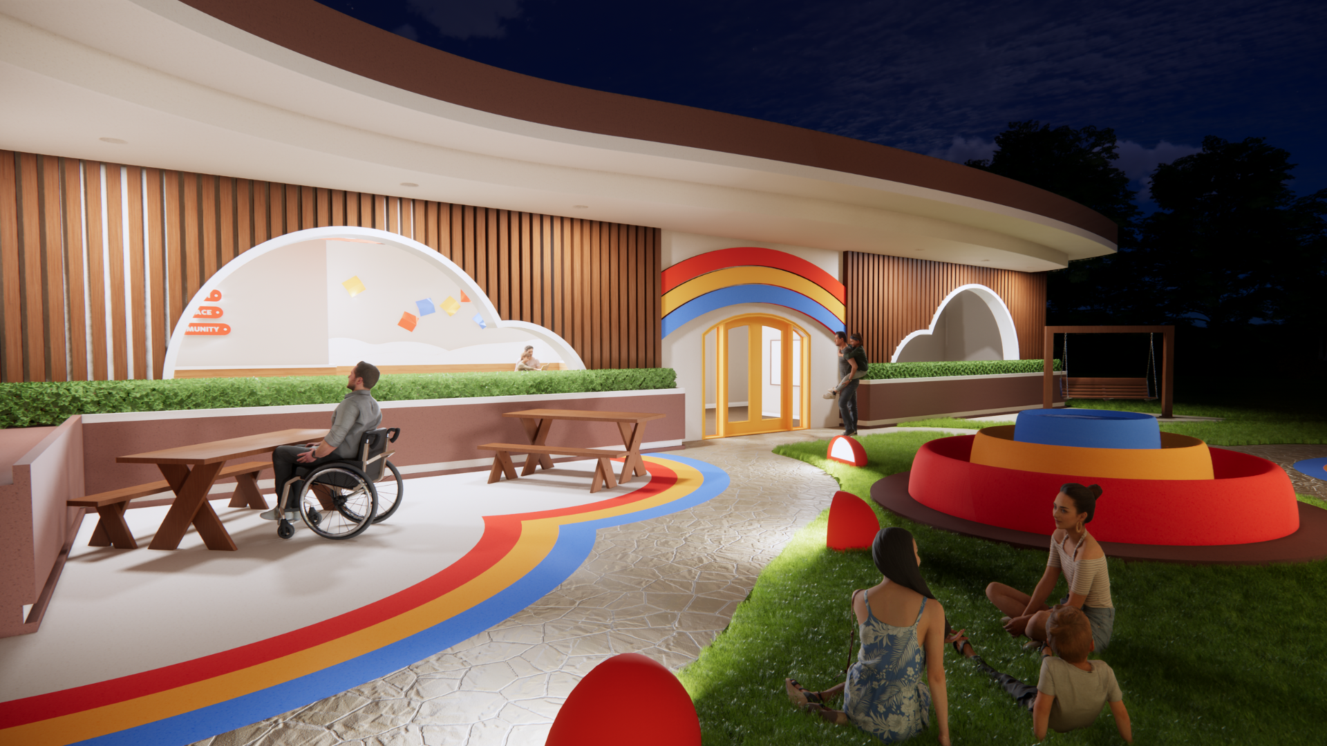 By providing children with an environment where they’re present and engaged, their healing process is made more effective. The wellness center integrates sensory play to ground patients and provide a relaxing experience. Back Into Shape celebrates the joy of childhood in the most unexpected of places.