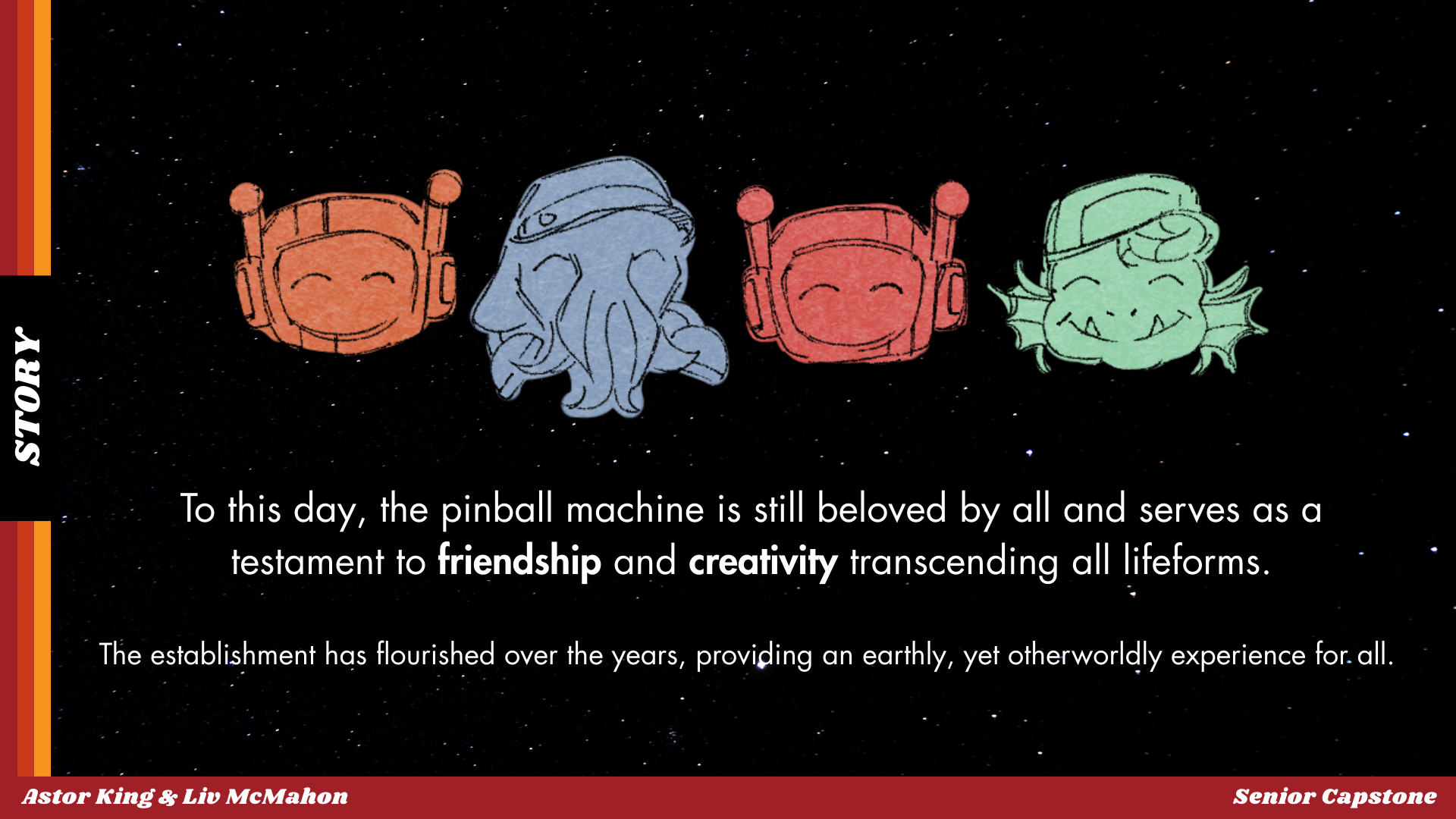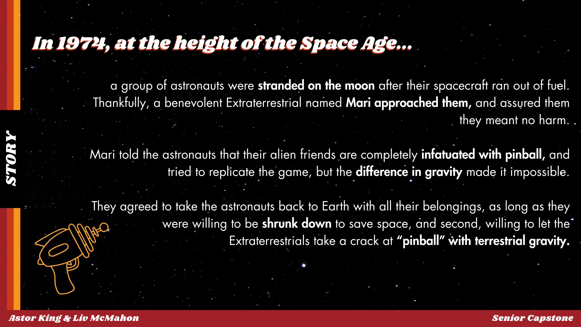 Made in collaboration with Liv McMahon as the first Entertainment Design joint thesis at Ringling College of Art and Design.